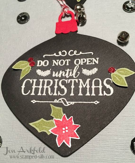 There's not a lot to go into with this one - I simply used the pillow box die, stamped the snowflakes from Holly Jolly Christmas, added a strip of music notes dsp, wrapped some ribbon on it. Then topped it off with that favorite little deer of mine and the sentiment. These are great for gift cards - or candies.....you name it!
